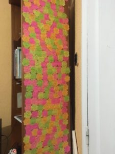 The thanksgiving wall has been Vane’s idea, every morning during our breakfast she asks each one of us what we are thankful about, then she writes it down on the post-It note and stick it on the side of a bookshelf. So many colorful and small notes of being thankful about.